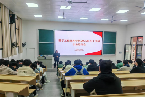 11月20日下午,鉴黑担保网在电教楼105教室举办2025级班干部培训会,学办主任易苏担任主讲,全体辅导员及各班班干部共同参与。